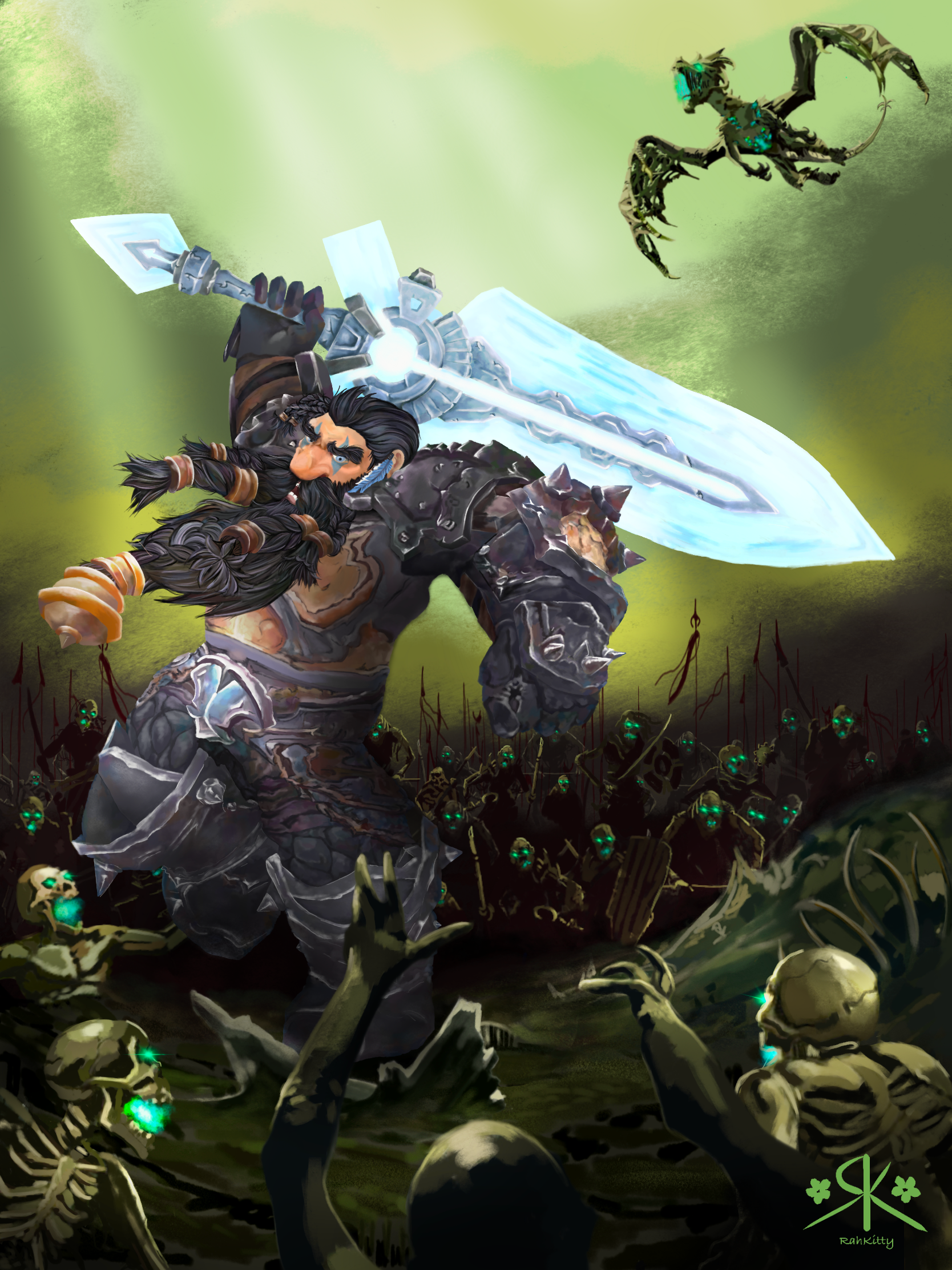 Full body, weapon, minion, medium background - (this is an older piece and my style has updated since it's creation)
